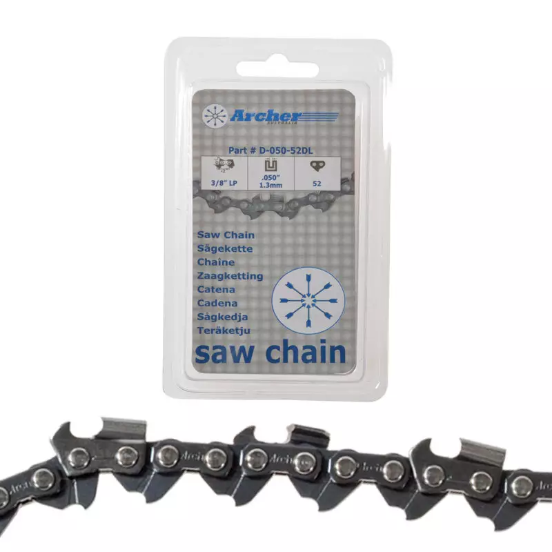 Teräketju ARCHER Mitat ja ominaisuudet: Ketjujako: 3/8" LP Micro Ketjun pituus: 49 vetolenkkiä Vetolenkin vahvuus: 1,3 mm / .043" Viilakoko 4,0mm Sopivuus: Yleisesti pienet mökki- ja sähkösahat... Lue lisää