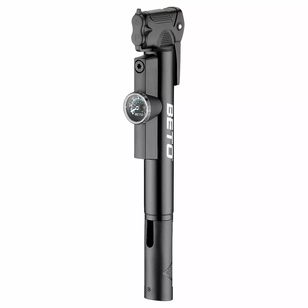Kevyt ja varmatoiminen BETO-käsipumppu mittarilla - Muovi - Väri: musta - Selkeä iso mittari 1"/25mm - Yksisuuntainen pumppaus - Lukittava tuplapää kattaa kaikki venttiilityypit... Lue lisää