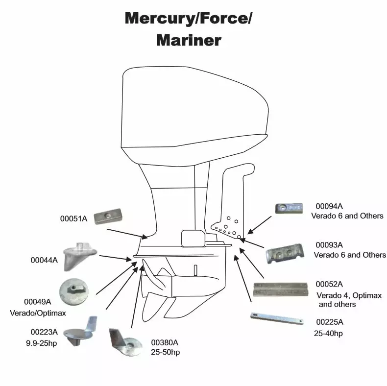Perf metals anodi evä Mercury/Mariner 9.9-25HP