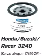 10 Micron Honda: 17670-ZW1-030GH Suzuki: 99105-20006 Racor: S3240 Sierra: 18-7947