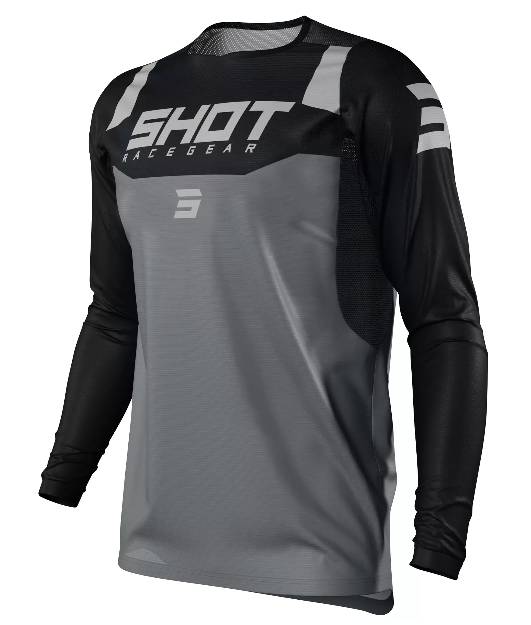 Näyttävän näköinen crossipaita haalistumattomilla printeillä ja kevyellä, hyvin tuulettuvalla kankaalla. Hyvin istuvassa mx-paidassa on takaa pidempi helma. Sopii hyvin käytettäväksi yhdessä Shot Chase crossihousujen kanssa.